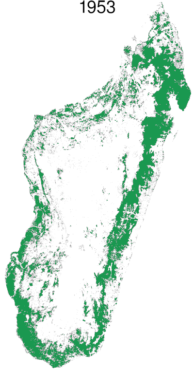 Déforestation de l'île de Madagascar durant les années depuis 1953